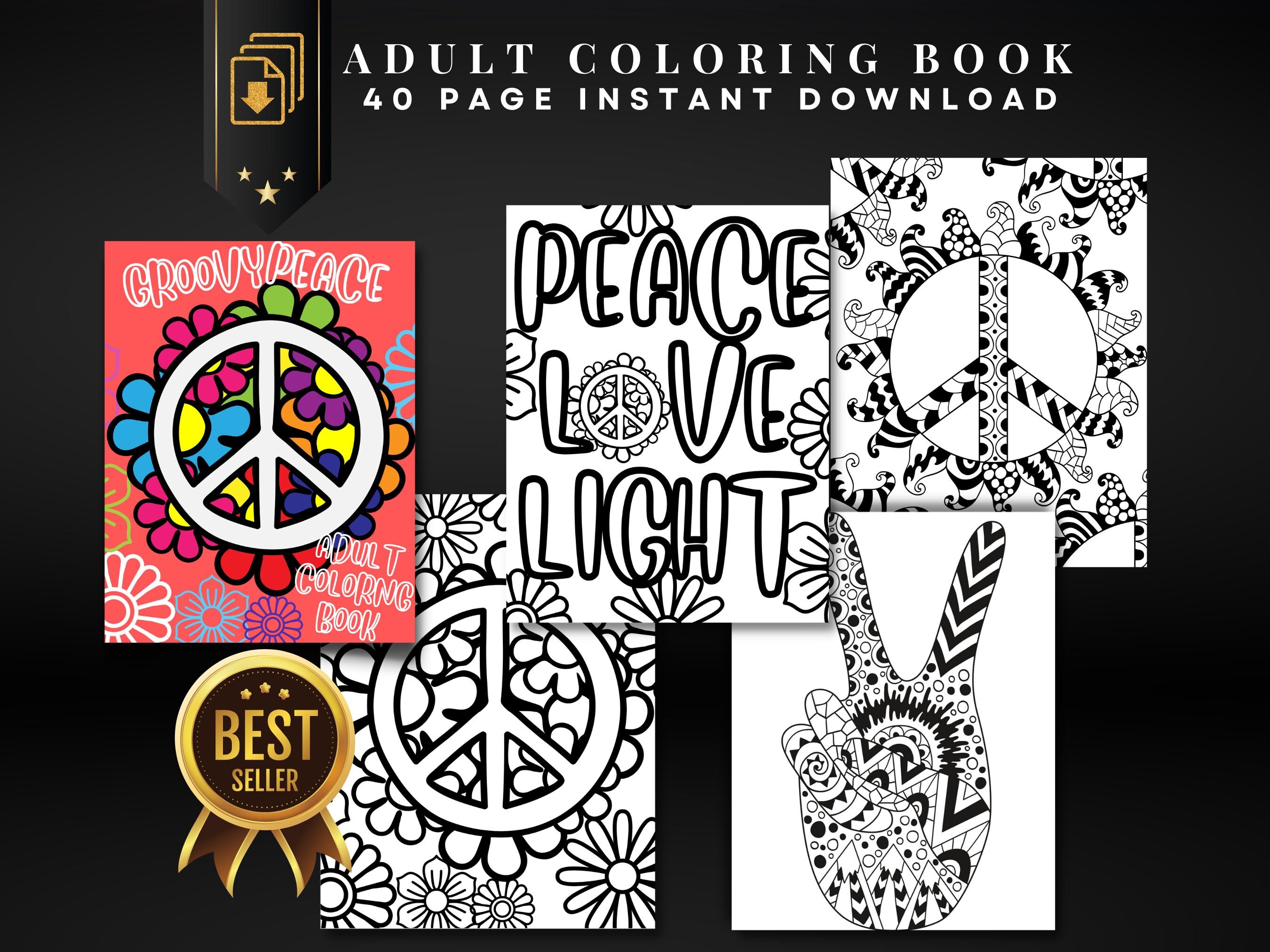 18 Page Groovy Peace Sign Digital Adult Coloring Book Etsy